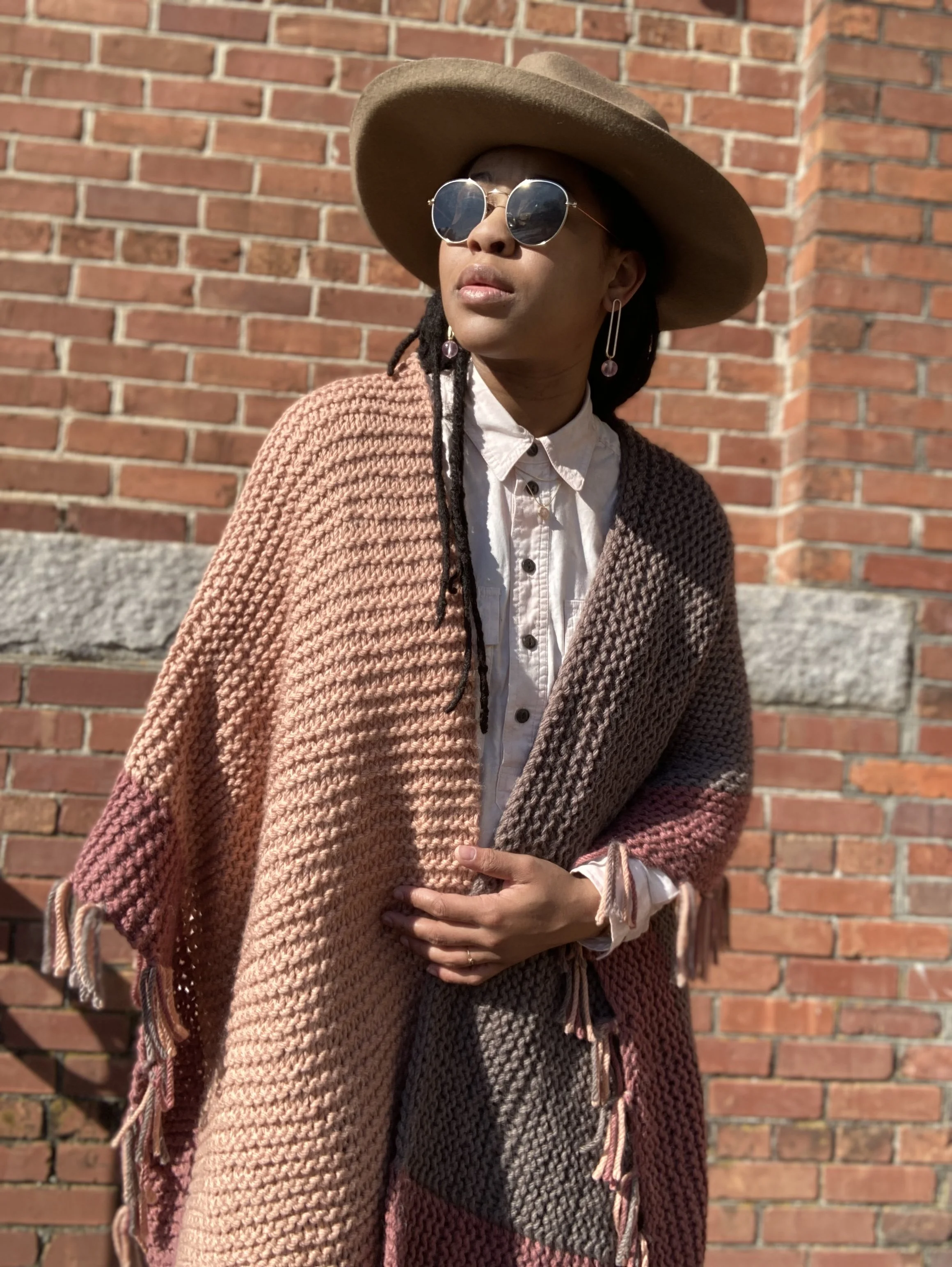 The Switch Wrap was designed to give its owner the ability to switch things up! Wear as a wrap, poncho, or ruana. Color blocking adds intrigue while further enhancing style possibilities.